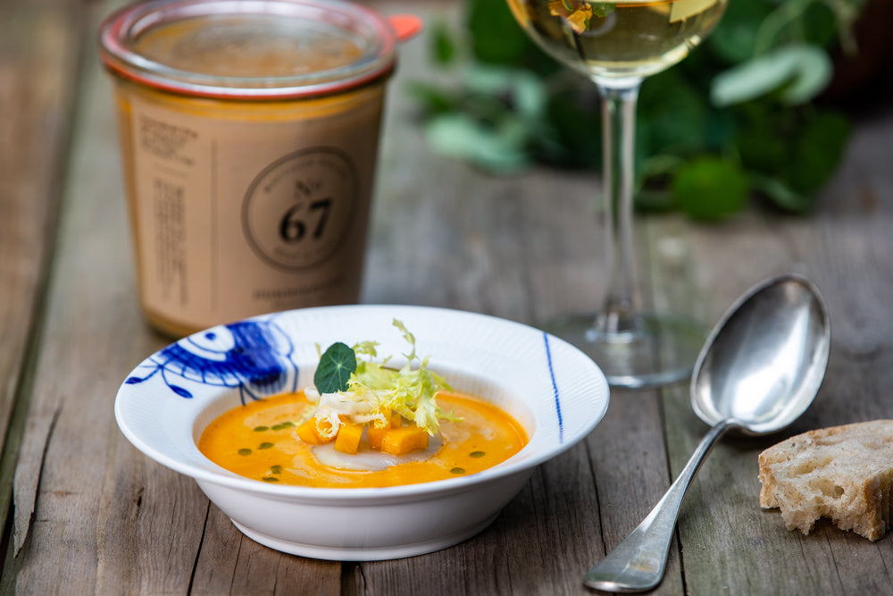 Vi emballere på glas og benytter henkogningsteknikken. Derfor har vi lang holdbarhed helt uden konserveringsmidler.