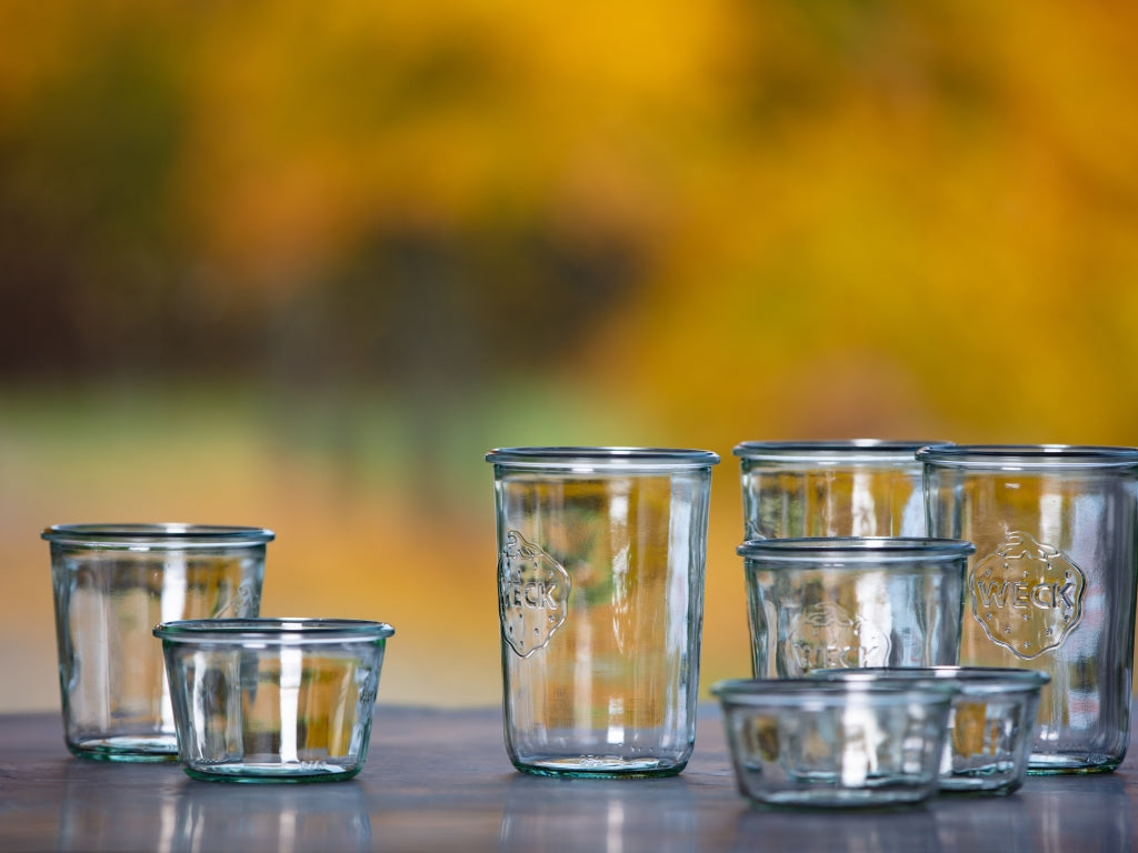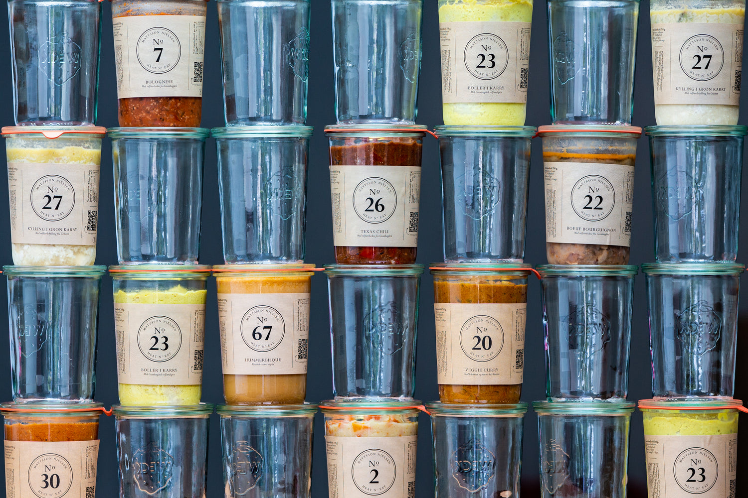 Glasene vi bruger kommer fra www.weck.de og er af meget høj kvalitet. De kan sagtens genbruges til andre formål, og vi har sørget for at den label, der sidder på, er let aftagelig.